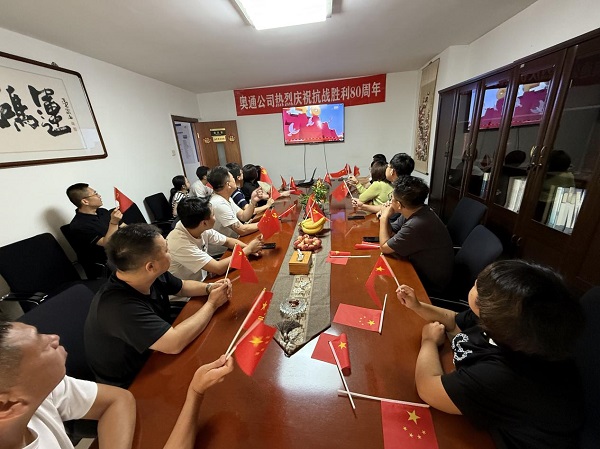 九月的金輝普照神州,值此抗戰(zhàn)勝利80周年紀(jì)念日,奧通公司全體同仁共聚一堂,懷著無(wú)比崇敬的心情觀(guān)看了莊嚴(yán)的閱兵盛典。作為新時(shí)代的奮斗者,我們不僅是鋼材貿(mào)易行業(yè)的從業(yè)者,更是偉大抗戰(zhàn)精神的傳承者和弘揚(yáng)者。